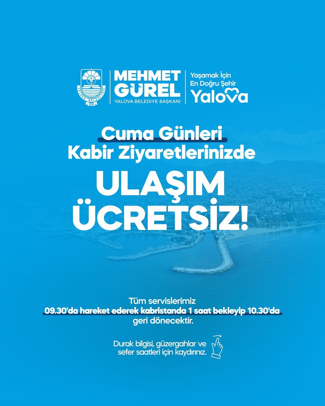 Yalova Belediyesi’nin sunduğu ücretsiz ulaşım hizmeti, her Cuma günü düzenleniyor. Bu sayede vatandaşlar, sevdiklerinin kabirlerini ziyaretlerini daha rahat ve huzurlu bir şekilde gerçekleştirebiliyor.